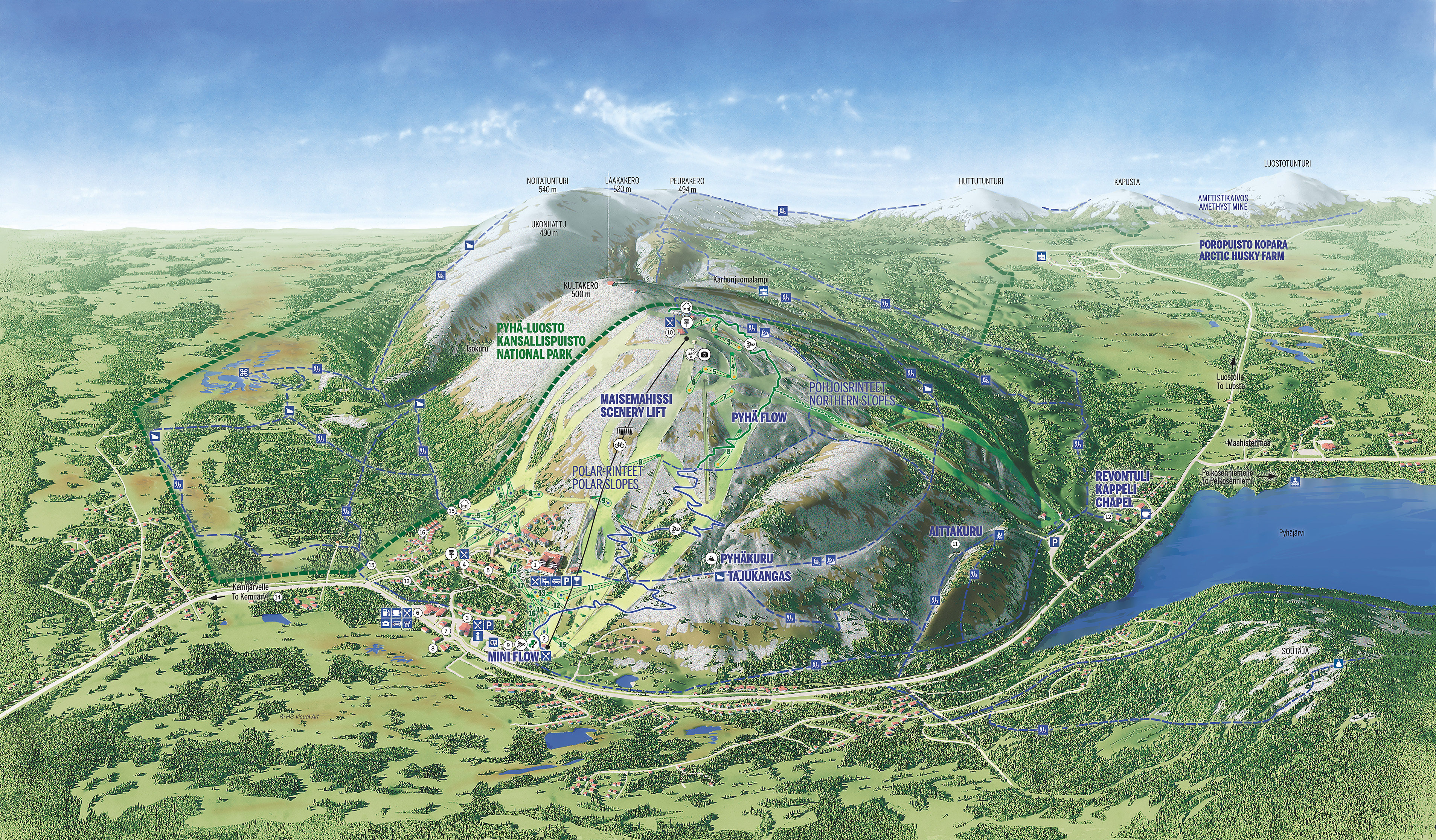 Summer Panoramas Himos (FIN) Luosto (FIN) Oulujärvi Culture Tour (FIN) Pyhä (FIN) Ruka (FIN) Rokua Geopark (FIN) Tahko (FIN) Cross Sections Katinkulta (FIN) Expo 2000 (FIN)